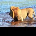 lion walking in water