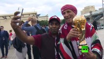 بالفيديو: أشهر مشجع عراقي يسلم "كأس العالم" لقطر