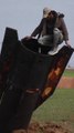 Syrian villagers climb Iranian missile that landed in meadow