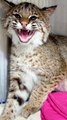 Un lynx roux tire la langue