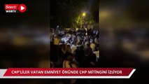 Gözaltılara tepki gösteren CHP'liler Vatan Emniyet önünde CHP mitingini izliyor