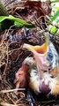 A mother bird feeds her young.