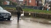Man saves a baby swan while its mom is being a mama!