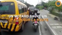 Un motard sauve un chaton sur la route !