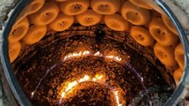 Uzbek SNAKE_ Shaped MEAT in Tandoor. TRADITIONAL Street Food. Uzbek Cuisine