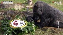 شاهد: الغوريلا الأكبر عمراً في العالم تحتفل بعيد ميلادها الخامس والستين