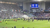 Moment Celtic and Rangers fans clash on pitch after penalty knockout