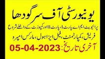 MA MSc MCOM Part 1 & 2 & Composite 2nd Annual 2022 Admission in April 2023- Sargodha UniversityUOS MA Admission 2023