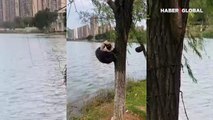 Kuş yuvasında görülen kedi, şaşkınlık yarattı: Dakikalarca keyif yaptığı anlar kahkahaya boğdu