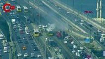 HALİÇ'TE METROBÜSTE YANGINI