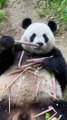 Panda eats bamboo shoots with one hand