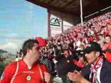 Fin du match VA - Lille en l'honneur des rouges et blancs une vibrante Valenciennoise de toute la Tribune Pouille.