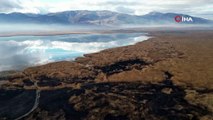 Bir çok yerinde kuruma başlayan Eber Gölü ile ilgili sevindiren gelişme Eber Gölü'nde su seviyesi yükselmeye başladı Türkiye'nin en önemli göllerinden birisi olan ve Afyonkarahisar'ın Bolvadin sınırları içerisinde kalan Eber Gölü'nde son aylarda yaşanan yağışların ardından su seviyesi yükseldi. Bir çok yerinde kuruma başlayan Eber Gölü ile ilgili sevindiren gelişme Eber Gölü'nde su seviyesi yükselmeye başladı AFYONKARAHİSAR - Türkiye'nin en önemli göllerinden birisi olan ve Afyonkarahisar'ın Bolvadin sınırları içerisinde kalan Eber Gölü'nde son aylarda yaşanan yağışların ardından su seviyesi yükseldi. Son yıllarda kuraklık ve kamış yangınları ile gündeme gelen Eber Gölü baharda aldığı yağmur yağışı ile eski günlerine kavuşmaya başladı. Gölün kuruyan bir çok noktasında yağan yağışların ardından su birikintileri oluşmaya başlarken, gölün su sınırlarında gözle görülür bir şekilde genişlediği dron ile havadan görüntülendi. Haber