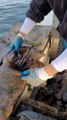 Crabe fer à cheval sauvé d'une ligne de pêche