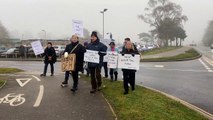 Protestors at QEH in King's Lynn calling out the use of props to keep the building standing