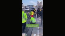 Un militant écologiste libéré par la police avec sa main collée dans du bitume