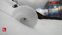 Amasya'da doğada ender oluşan kar ruloları görüntülendi