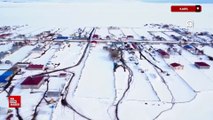 Kars'ta karla beyaza bürünen köyler dronla görüntülendi