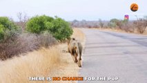 Male Lion Finds a Tiny Abandoned Hyena on Road