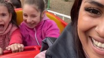 It is clear that the young girl is frightened by the drops on the ride. Despite the fact that the drops are not particularly intense, the scene is undeniably cute.