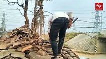 The rescue team can be seen breaking the wall to expose the snake’s hiding spot. They removed the snake from the house using poles and took it back to their facility before releasing it.