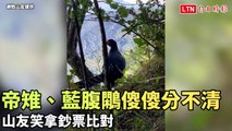 帝雉、藍腹鷴傻傻分不清... 山友笑拿鈔票比對(謝姓山友提供)