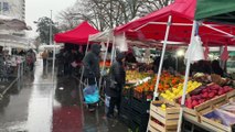 Sous la pluie sur le marché