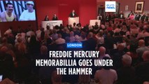 More than 1,400 of Freddie Mercury 's personal items, including his flamboyant stage costumes, handwritten drafts of “Bohemian Rhapsody” and the baby grand piano he used to compose Queen's greatest hits, are going on display in a free exhibition at Sotheby's London ahead of their sale.