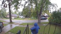 Woman Loses Footing and Falls Down on Front Porch