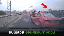 หวาดเสียว ! เก๋งมักง่ายขับเลยทางขึ้นไปแล้ว ก่อนตีมึนถอยรถลงสะพานไม่สนโลก