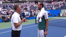 Après une victoire qui aurait pu être plus expéditive face à Sebastian Baez, au 3e tour de l'US Open, Daniil Medvedev était surtout soulagé de pouvoir rentrer se coucher pas trop tard samedi. Le Russe a tout de même été bluffé par le public new-yorkais, qui a donné de la voix pendant son match, même parfois entre deux services. Il a d'ailleurs fait une spéciale dédicace à un supporter bruyant.