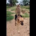Funny monkey with dog