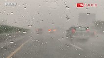 大雨像瀑布!國道路況多 彰化能見度僅50米4車連撞(民眾提供)