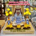Lọ hoa thường đặt bên phải của bàn thờ, và đĩa trái cây, đồ thờ, và ông Cóc ngậm tiền đặt bên trái.