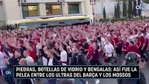 Piedras, botellas de vidrio y bengalas: así fue la pelea entre los ultras del Barça y los Mossos