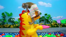 KiKi Monkey playing in the DIY Colorful Lego Swimming Pool with Naughty Baby _ KUDO ANIMAL KIKI