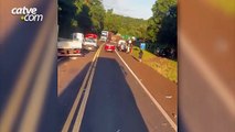 Forte colisão entre SUV e caminhão deixa pessoas feridas na BR-277