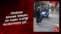 Ankara’da otobüse binmek isteyen bir kadın trafiği durdurmaya çalıştı