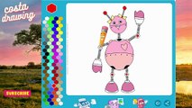 Easy Coloring Pink Girls Robot ll step by step coloring for kids