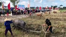 Nông dân ở xã Nghĩa Ninh (TP. Đồng Hới, tỉnh Quảng Bình) thi cày ruộng