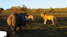 Il réussit à faire reculer un rhinocéros qui charge