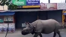 Ce rhinocéros se balade en pleine ville..