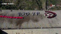 Bitlis'in Tatvan ilçesindeki Cumhuriyet Ortaokulu öğrencileri, Cumhuriyet'in 100'üncü yılı etkinlikleri kapsamında "100. Yıl" ve "Ay Yıldız" koreografisi oluşturdu.