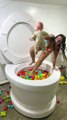 GOING UNDER in Worlds Largest Toilet with Crazy Surprise Face Surprise #shorts