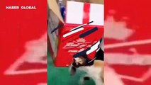 Sinirlenen kedinin köpeğe tokat atma çabası güldürdü
