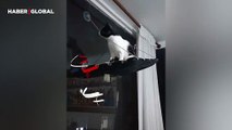 Kendi ipini kesen kedi kahkahaya boğdu