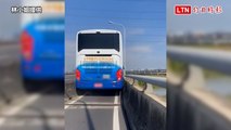 影片曝光!遊覽車誤闖機車道塞好塞滿 硬衝狂「刷卡」5公里(林小姐提供/翻攝畫面)