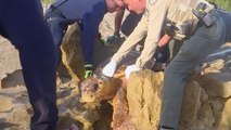 300-Pound Turtle Wedged In Rocks Gets Carried Back To The Ocean