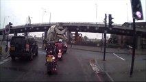 UK driver complaining about dangerous roundabout hits biker