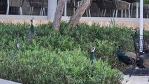 Muster of Peacocks Feeding on Plants